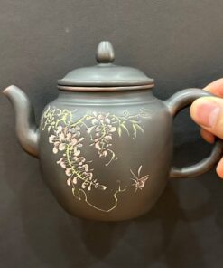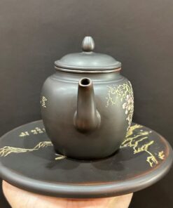 Ấm tử sa nê hưng hỏa biến dáng thang bà khắc hoa chữ đề thiền trà nhất vị 250ml.