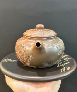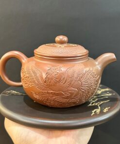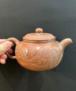 Ấm tử sa nê hưng hỏa biến thủ công khắc long phụng đẹp 310ml AKC54