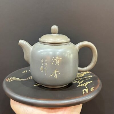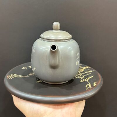 Ấm tử sa nê hưng dáng tỉnh lan khắc hoa màu xanh đẹp 280ml AKC07