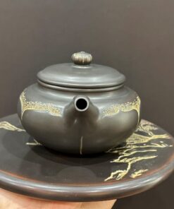 Ấm tử sa nê hưng phỏng cổ khắc đài sen hỏa biến đen đẹp 260ml AKC188