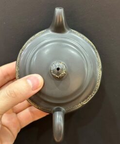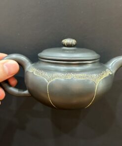 Đặt mua Ấm tử sa nê hưng phỏng cổ khắc đài sen hỏa biến đen đẹp 260ml AKC188