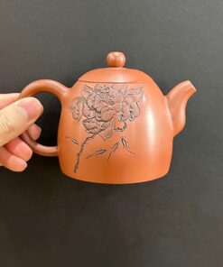 Ấm tử sa nê hưng dáng tần quyền khắc sen đẹp hỏa biến 260ml AKC108