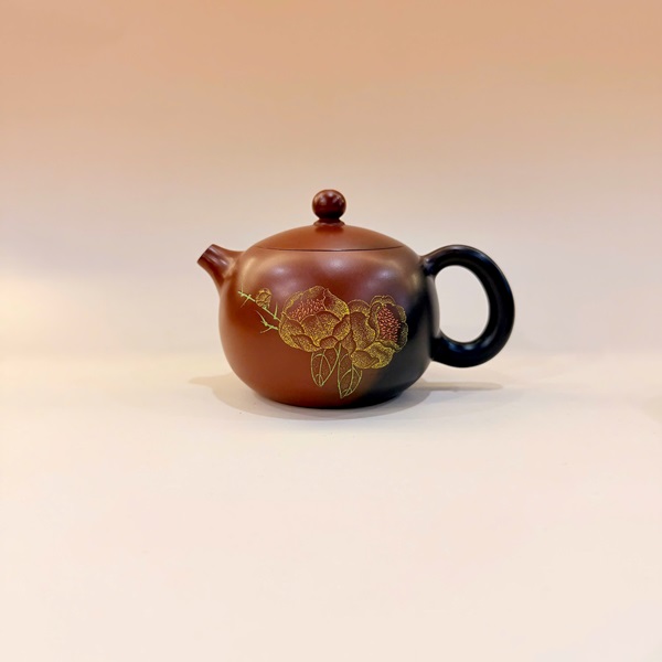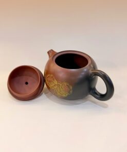 Ấm tử sa nê hưng tây thi hỏa biến đỏ đen khắc hoa vàng 220ml AKC244