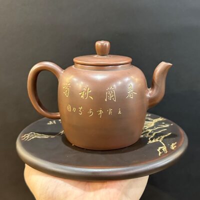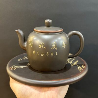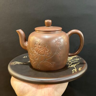 Ấm tử sa pha trà đạo nê hưng thủ công cao cấp khắc mẫu đơn 300ml AKC181