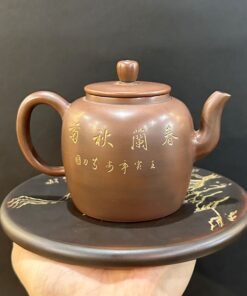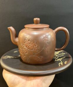 Ấm tử sa pha trà đạo nê hưng thủ công cao cấp khắc mẫu đơn 300ml AKC181