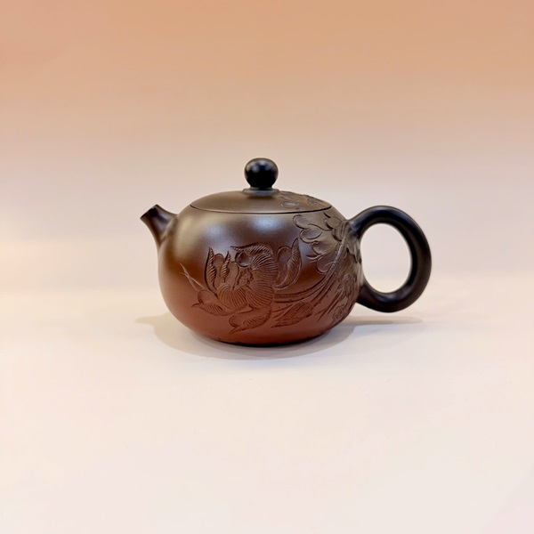 Ấm tử sa nê hưng tây thi khắc sen thủ công 230ml AKC71