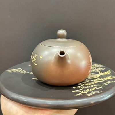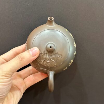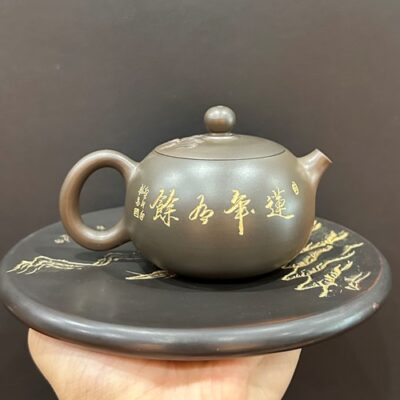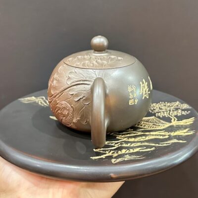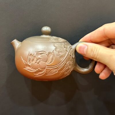 Ấm tử sa nê hưng tây thi khắc sen thủ công hoả biến nửa đỏ nửa đen pha trà ngon.