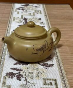 Ấm tử sa nê hưng tây thi khắc sen cao cấp 230ml vàng AKC205