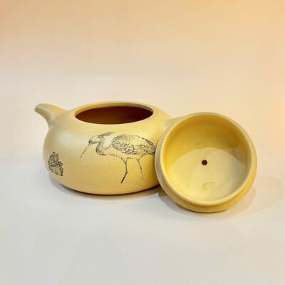 Ấm tử sa Nghi Hưng đoàn nê bán nguyệt khắc hạc 280ml ATS48