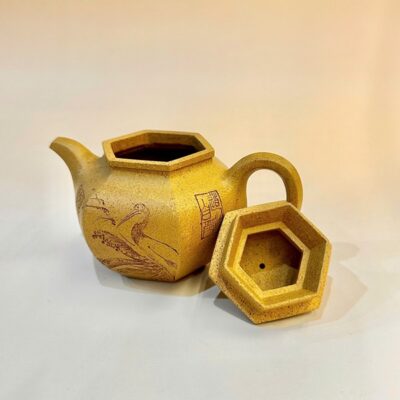 Ấm tử sa Nghi Hưng đoàn nê chuyết cầu lục phương khắc hạc 170ml ATS13