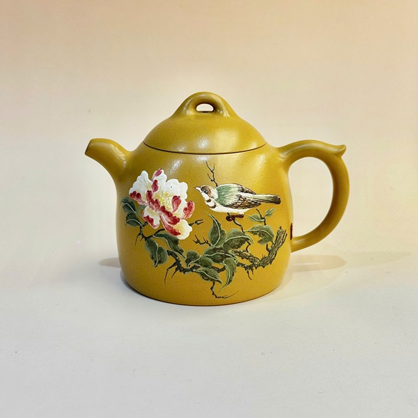 Ấm tử sa Nghi Hưng đoàn nê tần quyền khắc chim hoa 210ml ATS217