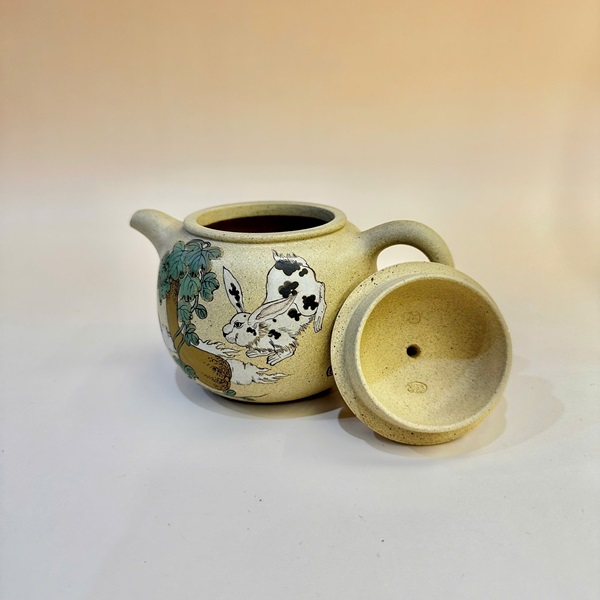 Ấm tử sa Nghi Hưng đoàn nê viên châu họa thỏ 240ml ATS24