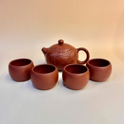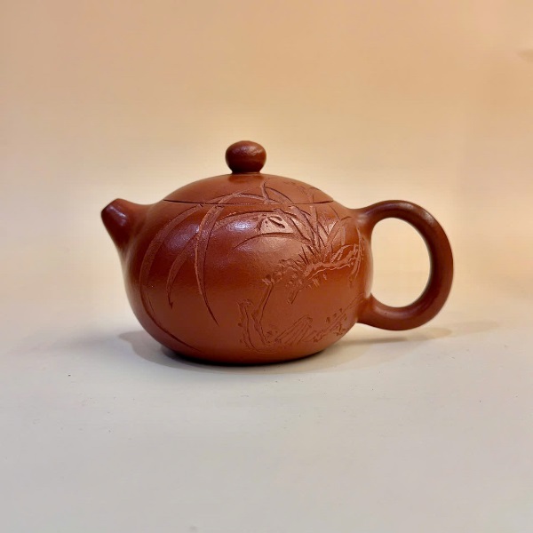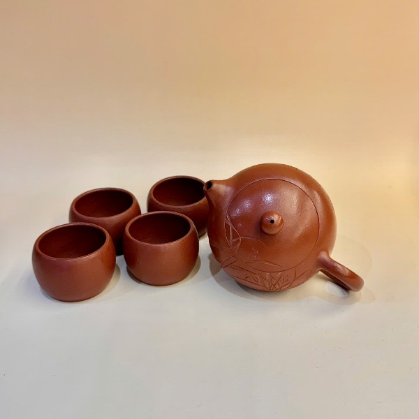 Ấm tử sa Nghi Hưng tây thi khắc hoa lan kèm 4 chén ATS267