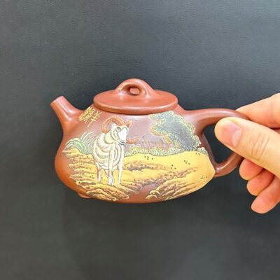 Ấm tử sa đất cũ nguyên khoáng thạch biều đắp nổi dê 240ml ATS61