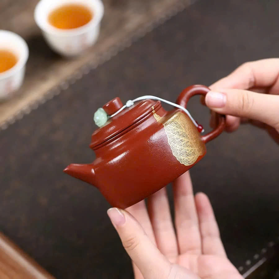 Ấm tử sa tử nê đức trung họa kim đề 140ml ATSM18