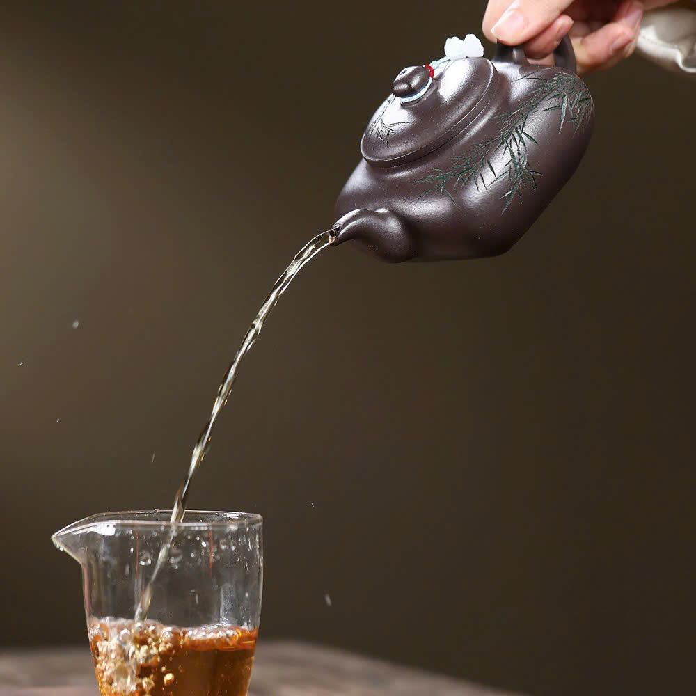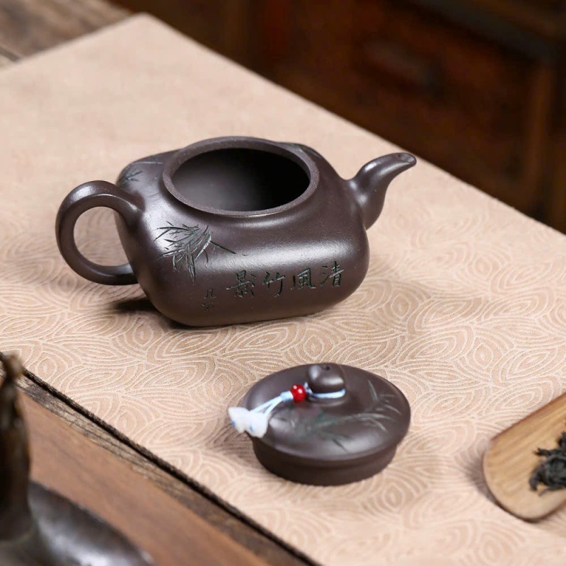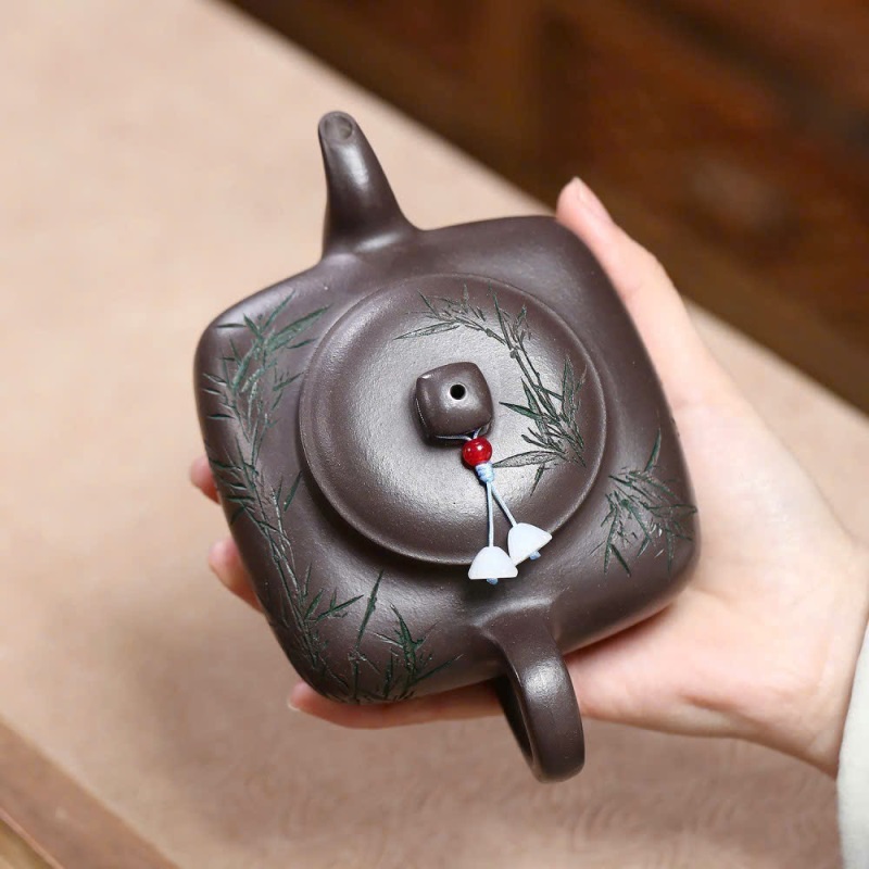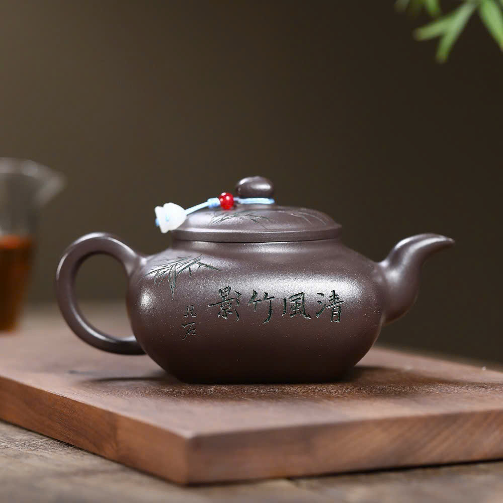 Ấm Tử Sa Tứ Phương Hoạ Trúc Tử Nê 380ml ATSM27