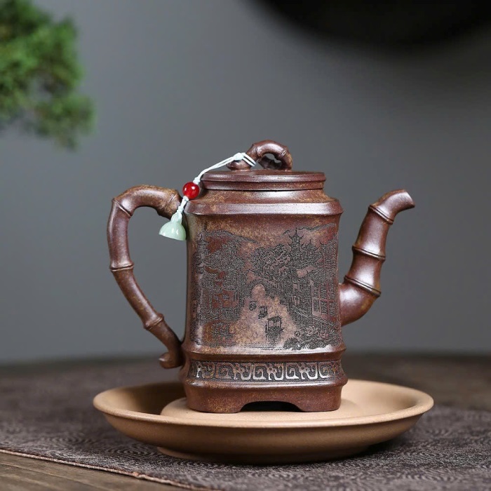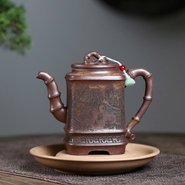 – Tên sản phẩm: Ấm tử sa trúc đoạn đáy tào thanh khắc sơn thuỷ