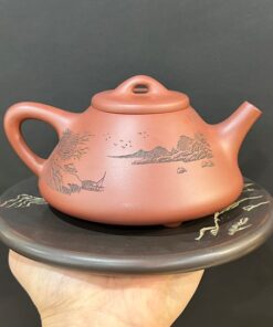 Ấm tử sa thạch biều nguyên khoáng đất cũ hoạ sơn thủy 350ml ATS168
