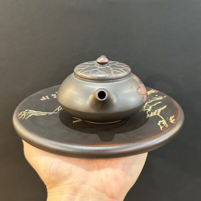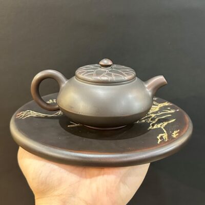 Ấm văn đán tử sa nê hưng khắc sen cá thủ công dáng nhỏ 120ml AKC222
