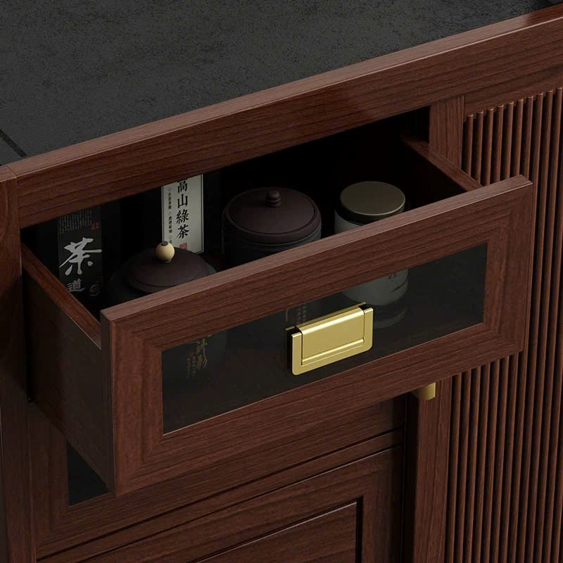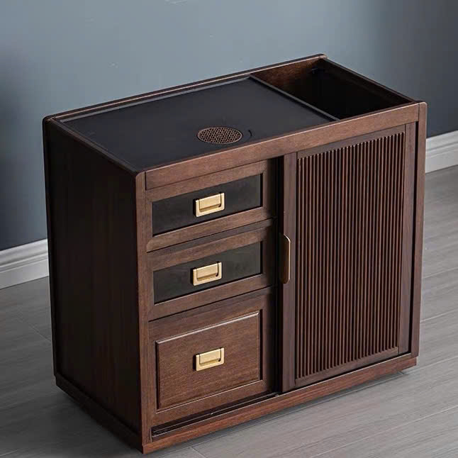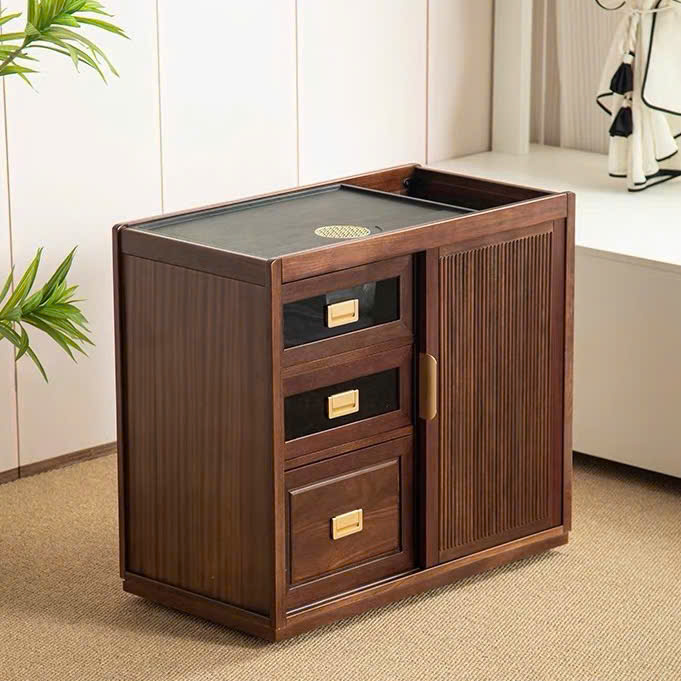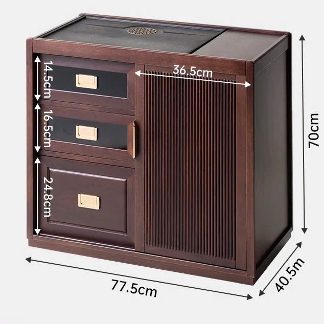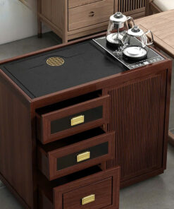– Công năng: Có tủ chứa bình nước bên phải, bên trái có 1 ngăn kéo ở giữa, trên dưới là hộc để đồ, cửa dạng trượt