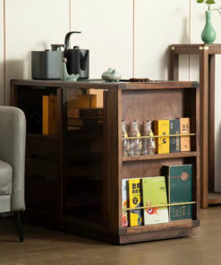 Bàn Trà Di Động Màu Gỗ Óc Chó Cửa Tủ Kính Mặt Đá 95x46x71.5 BT33