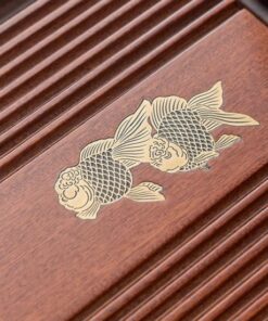 Bàn Trà Điện Gỗ Mun Khắc Cá Vàng Khung 90x49x7 KJ502