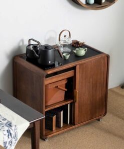 Bàn Trà Gỗ Óc Chó Di Động Mặt Đá Hai Ngăn Hở Cao 66×73.5x45cm BT19