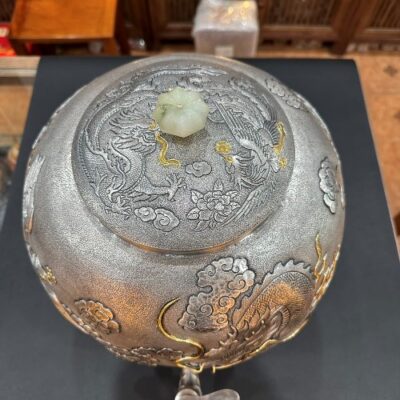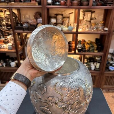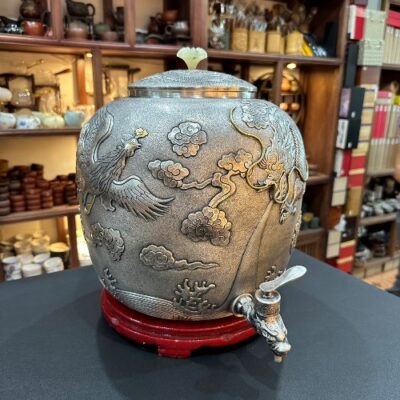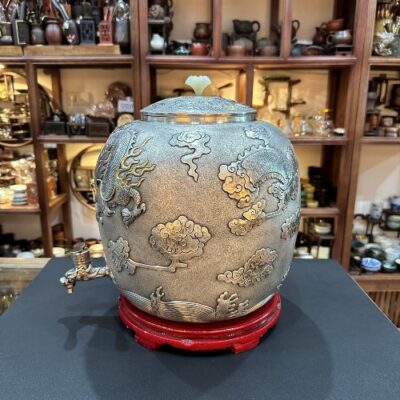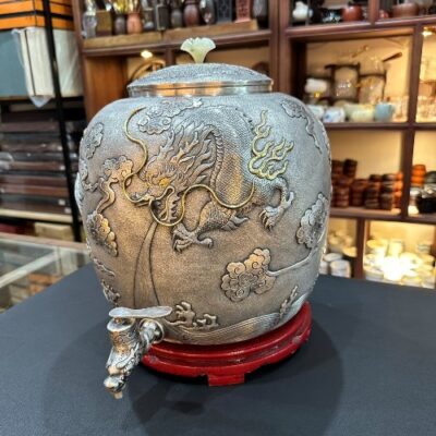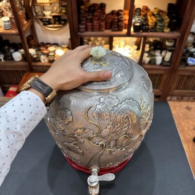 Bình đựng nước bằng bạc nguyên chất 999 gò tay long phụng đẹp 15L 3,5kg bạc vòi bằng bạc.