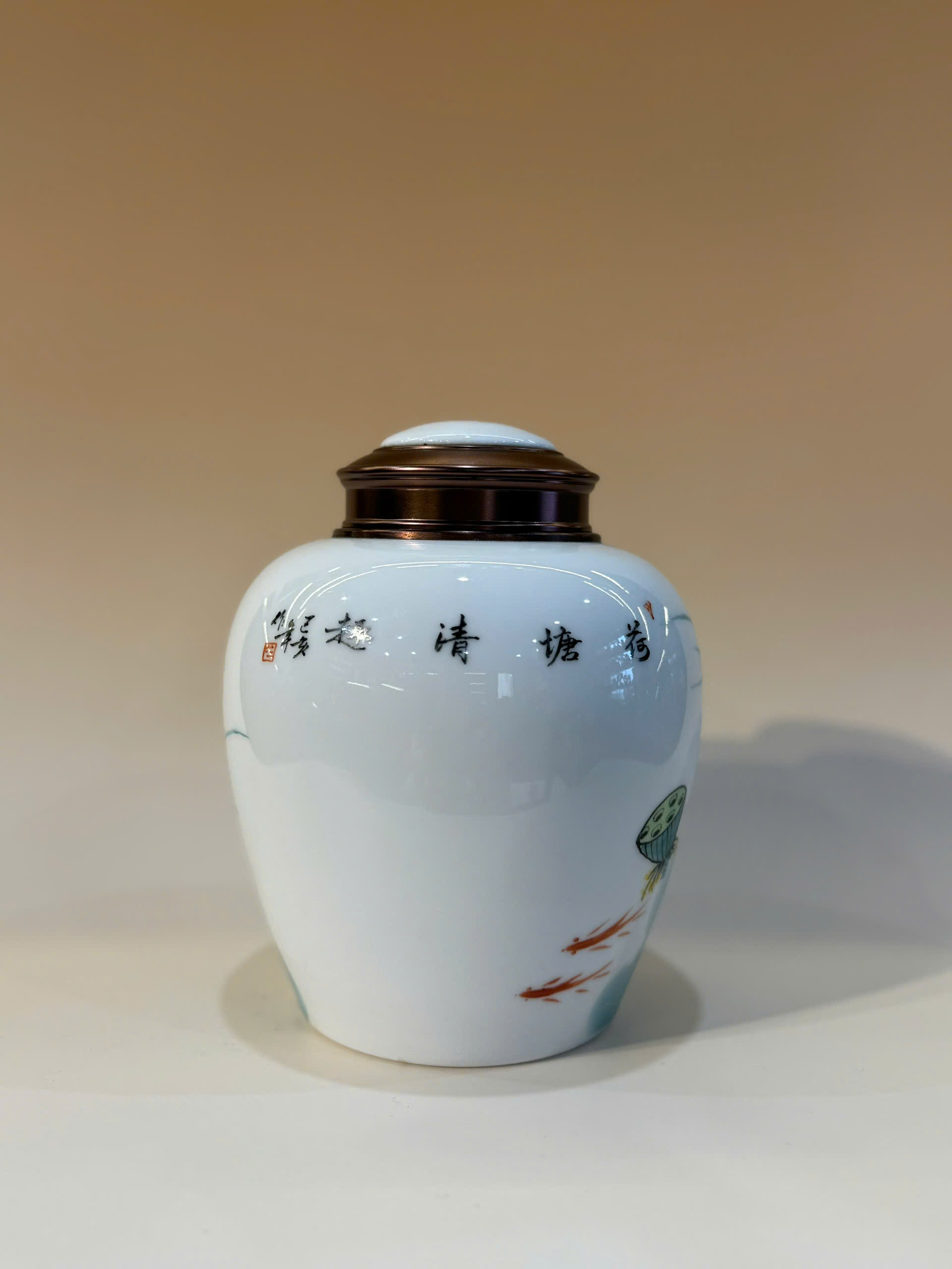 Bình đựng trà sứ cảnh đức vẽ tay thủ công nắp xoáy kín đẹp 800ml HT57.