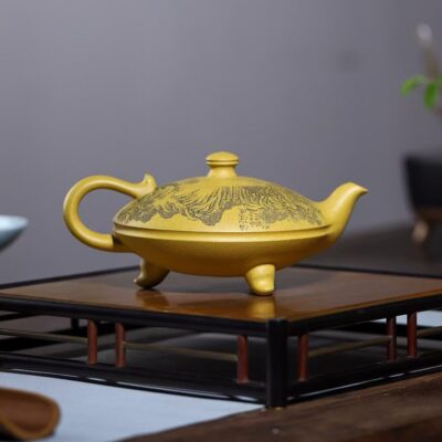 Bình trà tử sa hư biến tam túc khắc sơn thủy đoàn nê đất cũ 500ml ATS261