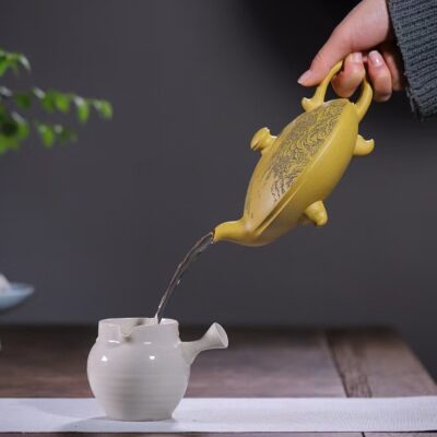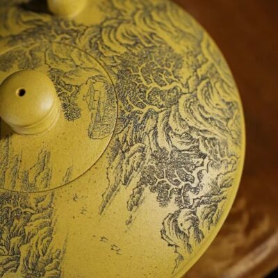 Đặt mua Bình trà tử sa hư biến tam túc khắc sơn thủy đoàn nê đất cũ 500ml ATS261