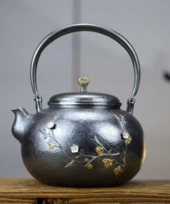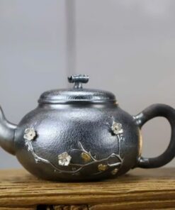 Đặt mua Bộ ấm chén bạc pha trà cao cấp nguyên chất 999 hoa đào thủ công AB84