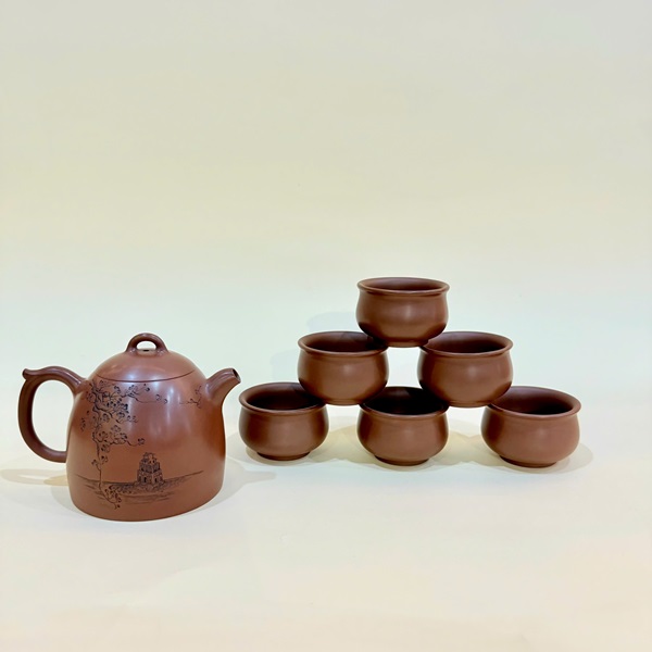 Bộ ấm chén cao cấp khắc hồ gươm Hà Nội thủ công đẹp 220ml BAT180