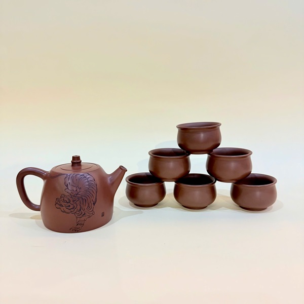 Đặt mua Bộ ấm chén đẹp làm quà tặng gốm nê hưng cao cấp hình hổ BAT291