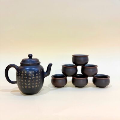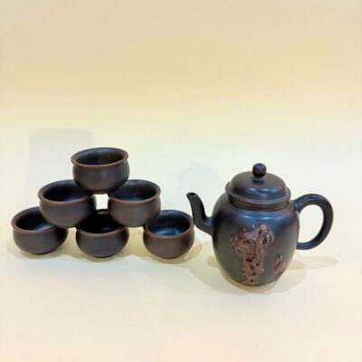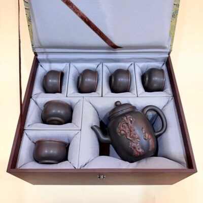 Bộ ấm chén hoả biến gốm tử sa nê hưng đắp nổi vái tượng đá 330ml BAT64