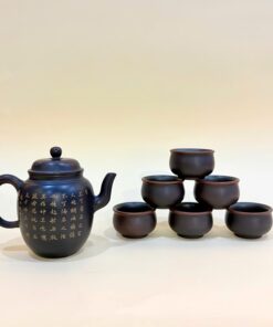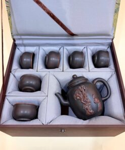Đặt mua Bộ ấm chén hoả biến gốm tử sa nê hưng đắp nổi vái tượng đá 330ml BAT64