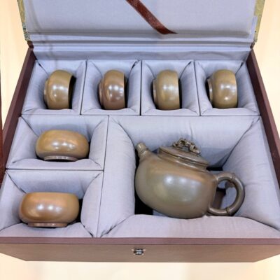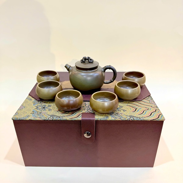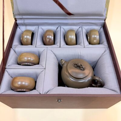 Bộ ấm trà tử sa cao cấp nê hưng dáng biển phúc hộp da đẹp AT70