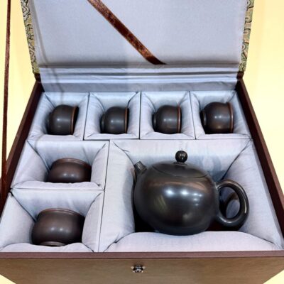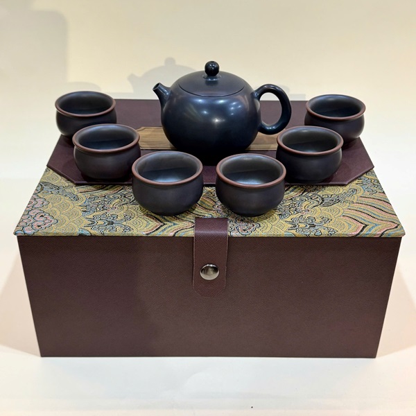 Bộ ấm trà tử sa nê hưng cao cấp thủ công vàng hộp gỗ đẹp AT80