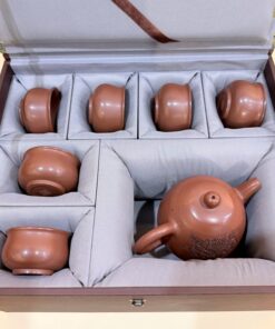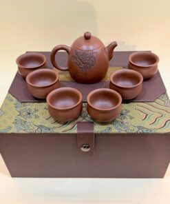 Bộ ấm chén tử sa nê hưng dáng tần quyền khắc sen đẹp hỏa biến 260ml BAT108