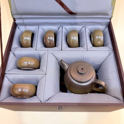 Bộ ấm trà cao cấp tử sa nê hưng dáng trống đồng đẹp kèm hộp sang trọng AT23