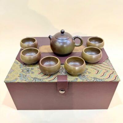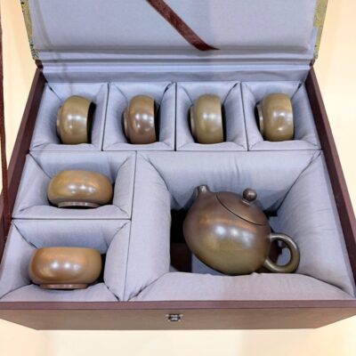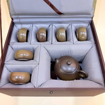 Bộ ấm trà tử sa cao cấp nê hưng hỏa biến dáng phỏng cổ hộp da AT71