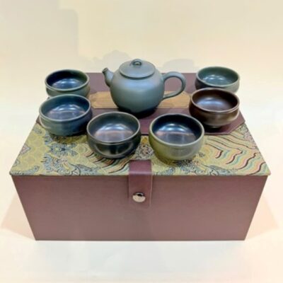 Bộ ấm trà tử sa cao cấp nê hưng hỏa biến dáng phỏng cổ hộp da AT71