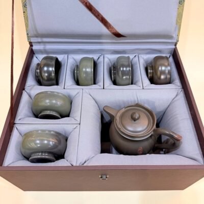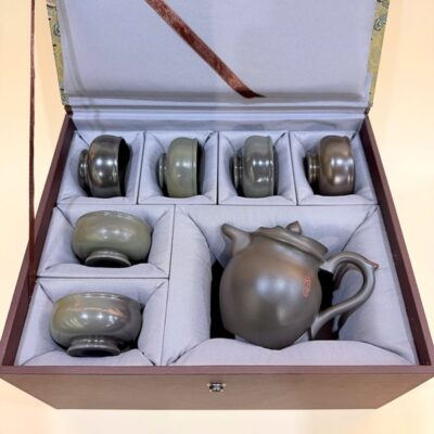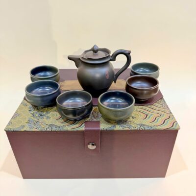 Đặt mua Bộ ấm chén tử sa nê hưng tăng mao hỏa biến đen đẹp 250ml BAT110