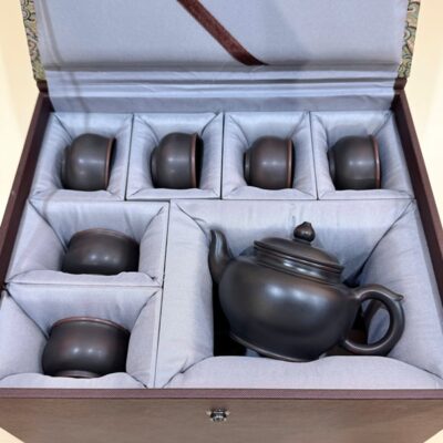 Bộ ấm trà tử sa cao cấp nê hưng hỏa biến dáng phỏng cổ hộp da AT71