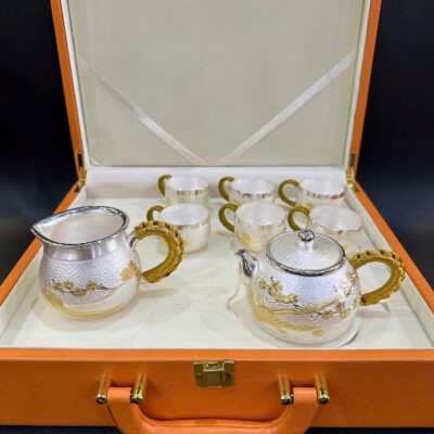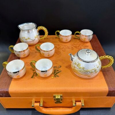 Đặt mua Bộ ấm pha trà bạc nguyên chất 999 gò tay thủ công báo xuân chim đẹp AB90