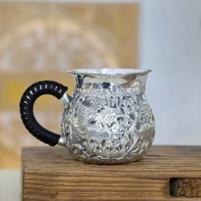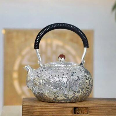 Ấm đun nước pha trà bằng bạc 999 nguyên chất hoa đào đẹp 1,1L AN84