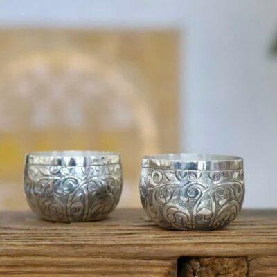 Đặt mua Bộ ấm pha trà bạc nguyên chất 999 gò tay thủ công hoa mẫu đơn đẹp AB86