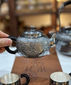 Bộ ấm pha trà bạc nguyên chất 999 gò tay thủ công cảnh băng tan AB81