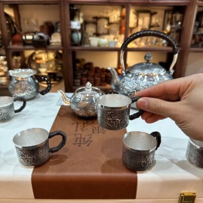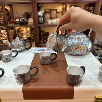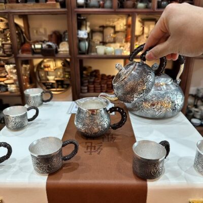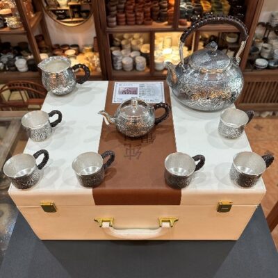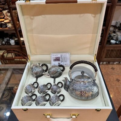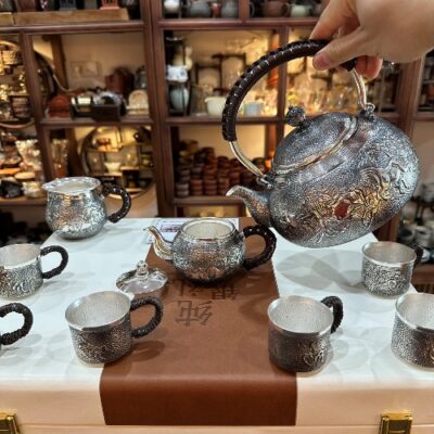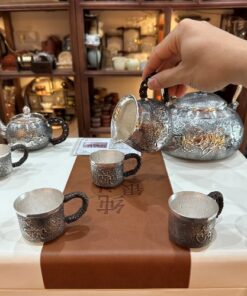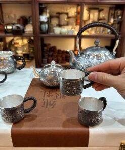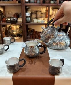 Đặt mua Bộ ấm trà bạc nguyên chất 999 cao cấp gò thủ công bát mã tinh xảo AB88