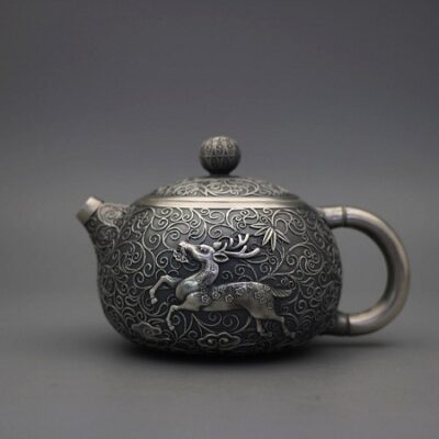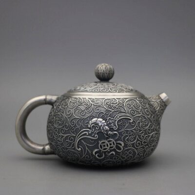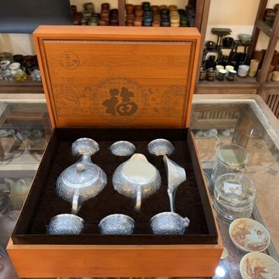 Đặt mua Bộ ấm trà bạc cao cấp nguyên chất 999 Phúc Lộc uống trà ngon AT99